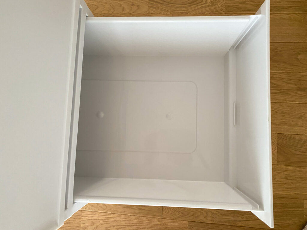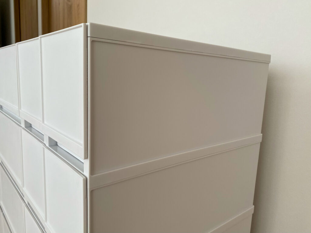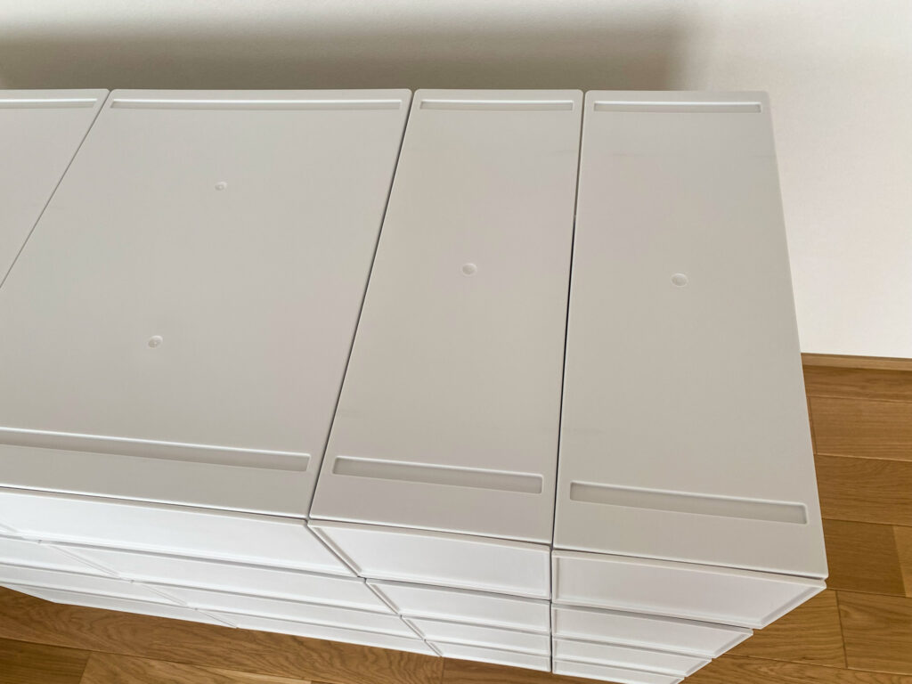 「天井の外側」や「引き出しの内側」に凹凸が。ない方が拭きやすく、よりシンプルです。無印のものもそうですし、この製品に限ったことではないですが。